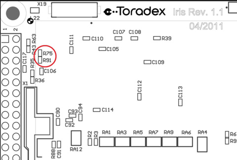 - For the models ET050080DH6 and ET050080DM6 the pin 34 is an active low Standby signal. Since on the Iris board this signal is set to GND by default, the resistor R91 needs to be disassemble and the resistor R75 needs to be assembled.